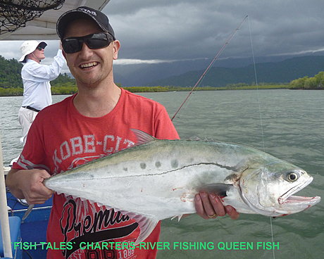 Commonly, the River Charters can yield a bonanza of Barramundi, Queen Fish (Queenies), Grunter (Javelin Fish), GT's (Trevally), Thread Fin & Blue Salmon, Mangrove Jack as well as Fingermark, to name a few in the saltwater.