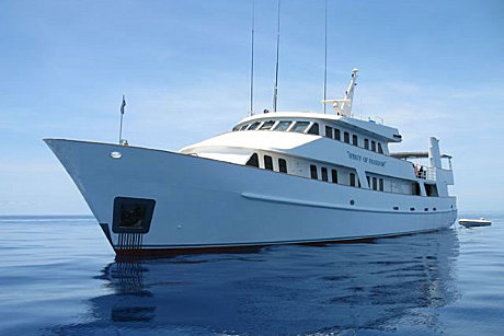 Spirit of Freedom is Australia’s most comfortable live aboard diving vessel offering the best dive cruising to the Great Barrier Reef and remote Coral Sea reefs out of Cairns in tropical north Queensland. During your dive trip you will be treated to first class chef prepared meals and complimentary wine with your evening meal after an amazing day of diving. There are three decks on Spirit of Freedom with a separate lounge, dining and under cover top deck providing plenty of space for up to 26 guests. The 11 generous air-conditioned cabins all containing private bathrooms make for a very comfortable live aboard diving adventure to the Great Barrier Reef.