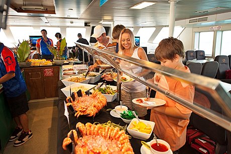 Hot and cold buffet lunch with seafood, afternoon tea, on-board Wi-Fi access, free introductory snorkelling demonstration provided by a qualified instructor, glass bottom boat and semi-submersible coral viewing tours, touch some of the reef’s unique marine creatures in the marine touch tank, onboard reef ecology presentation by marine naturalist, children can enjoy the safety of the fully enclosed children’s wading pool, all snorkelling equipment including stinger suits provided and one Seawalker Helmet Dive.