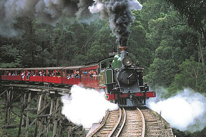 Wave at the locals as you take an enchanting ride on the quaint old steam train, Puffing Billy, as it twists and winds its way down through some charming little villages and picturesque countryside. Experience the feeling of years gone by as the train’s whistle echoes through the gorgeous surrounds and the steam billows from the engine room. Then you’re off to visit the heart of the Dandenongs – the exquisite Sherbrooke Forest. Handfeed some of the cheeky, colourful birds that pop along to say hello at the Grants Picnic Ground.