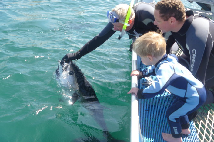 If you don’t want to get wet, you may still feed our Tuna or venture below the surface in our glass-sided underwater viewing area. There are many other species of local fish to view and we have a touch tank for the little people to enjoy. Hot and cold drinks available for purchase on the platform.
