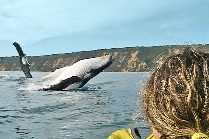 Spectacular headland buzzing with marine life & a dolphin view kayak tour in the wild.
