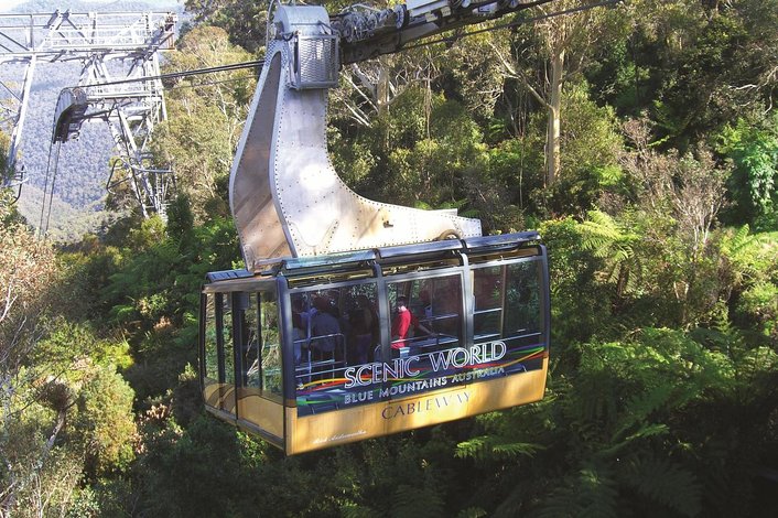 The 510 metre journey gently descends into the Jamison Valley and also returns visitors to the top of the escarpment. The Cableway’s fully enclosed cabin provides a unique vantage point for viewing the Three Sisters, Orphan Rock, Mt Solitary and Katoomba Falls.