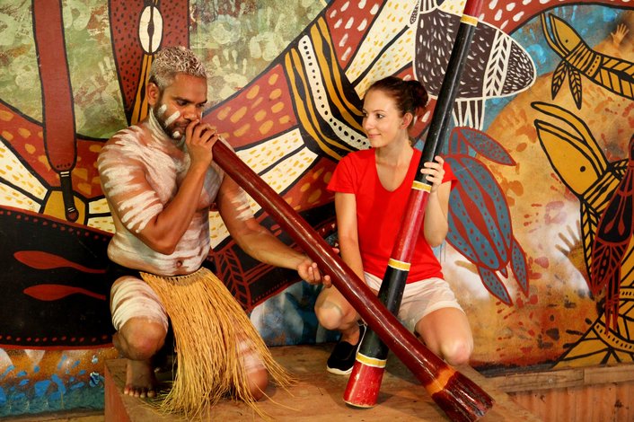 The Pamagirri Aboriginal Experience is unforgettable. Follow the Dreamtime Walk down the Rainbow Serpent pathway, and learn how to throw a boomerang. Our Pamagirri guides will demonstrate traditional spear throwing as well as a didgeridoo presentation, followed by an interactive traditional Aboriginal dance performance.