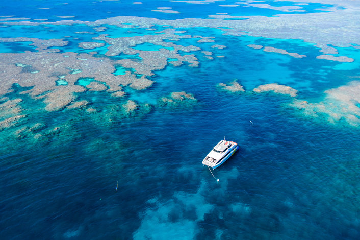 The reef is accessed by our premium custom designed dive vessel. She has two levels of air conditioned luxury, lounge style seating, a partially shaded deck and fresh water shower on-board. There is a full beam swim platform which makes entering and exiting the water a comfortable and easy experience.