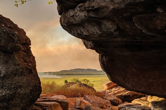 This morning we travel to nearby Nourlangie Rock. Here you can see how local Aboriginal people lived in this area through changing times. Environmental and social changes are reflected in the rock art and in the ground, where archaeologists have uncovered over 20,000 years of Aboriginal occupation.