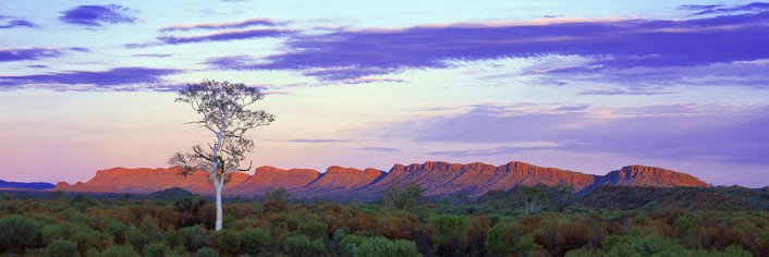 The panoramic landscapes of the West MacDonnell Ranges are extraordinary for their immensity and the spectacular array of sunburnt oranges, maroons and purples on display. These mighty ranges light up in brilliant oranges and reds at sunset on the return trip to Alice Springs.